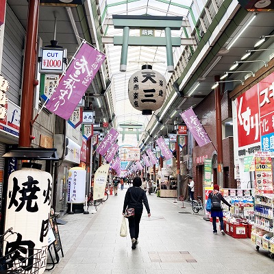 地上へ出た後、「阪急三番街」を左に見ながら、阪急線に沿って進む