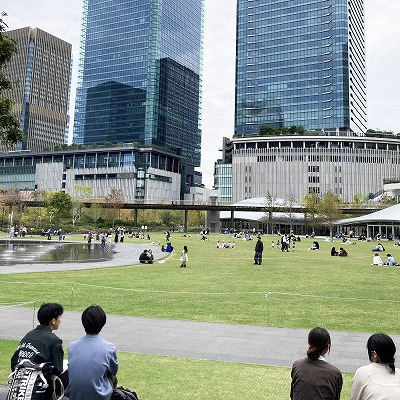 店内で食べることもできますが、天候が良ければ「グラングリーン大阪」で食べるのもいいものです。